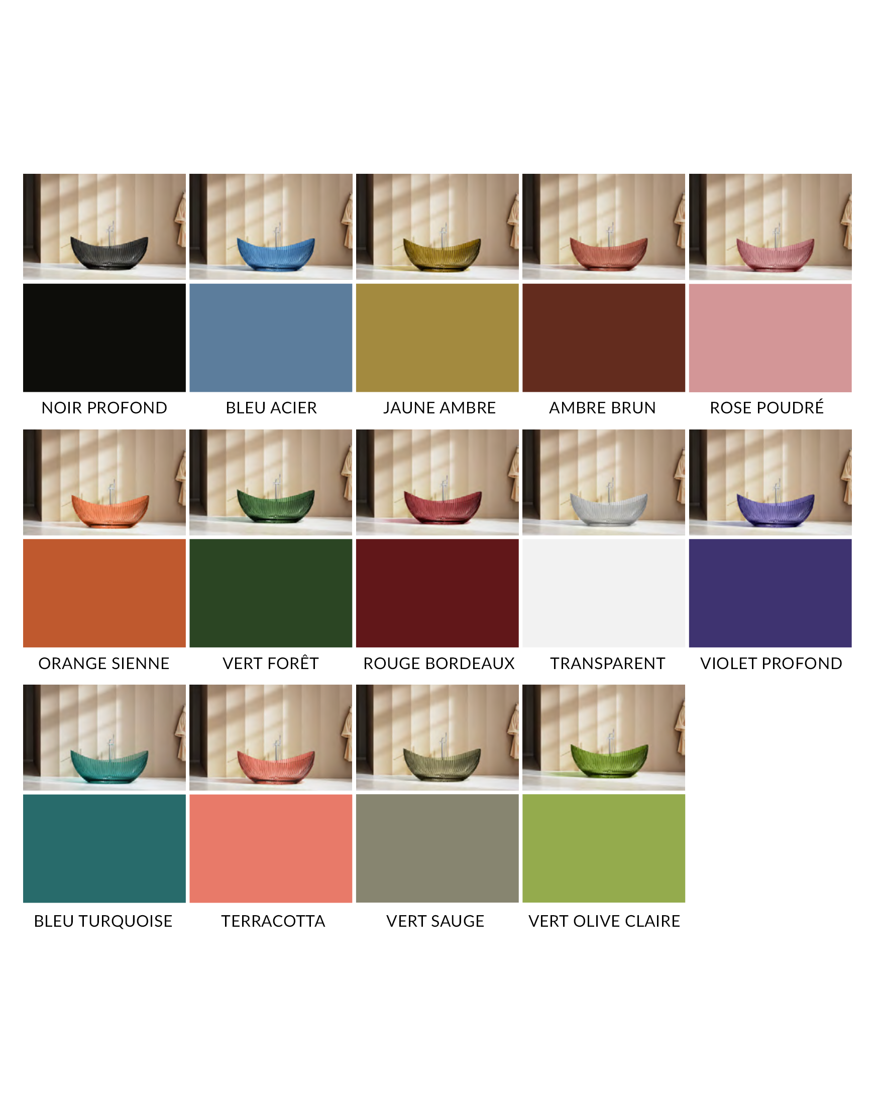 Si vous recherchez un choix simple et équilibré, certaines teintes comme Transparent, Noir profond, Ambre ou Vert Sauge s’intègrent naturellement dans la plupart des environnements.
